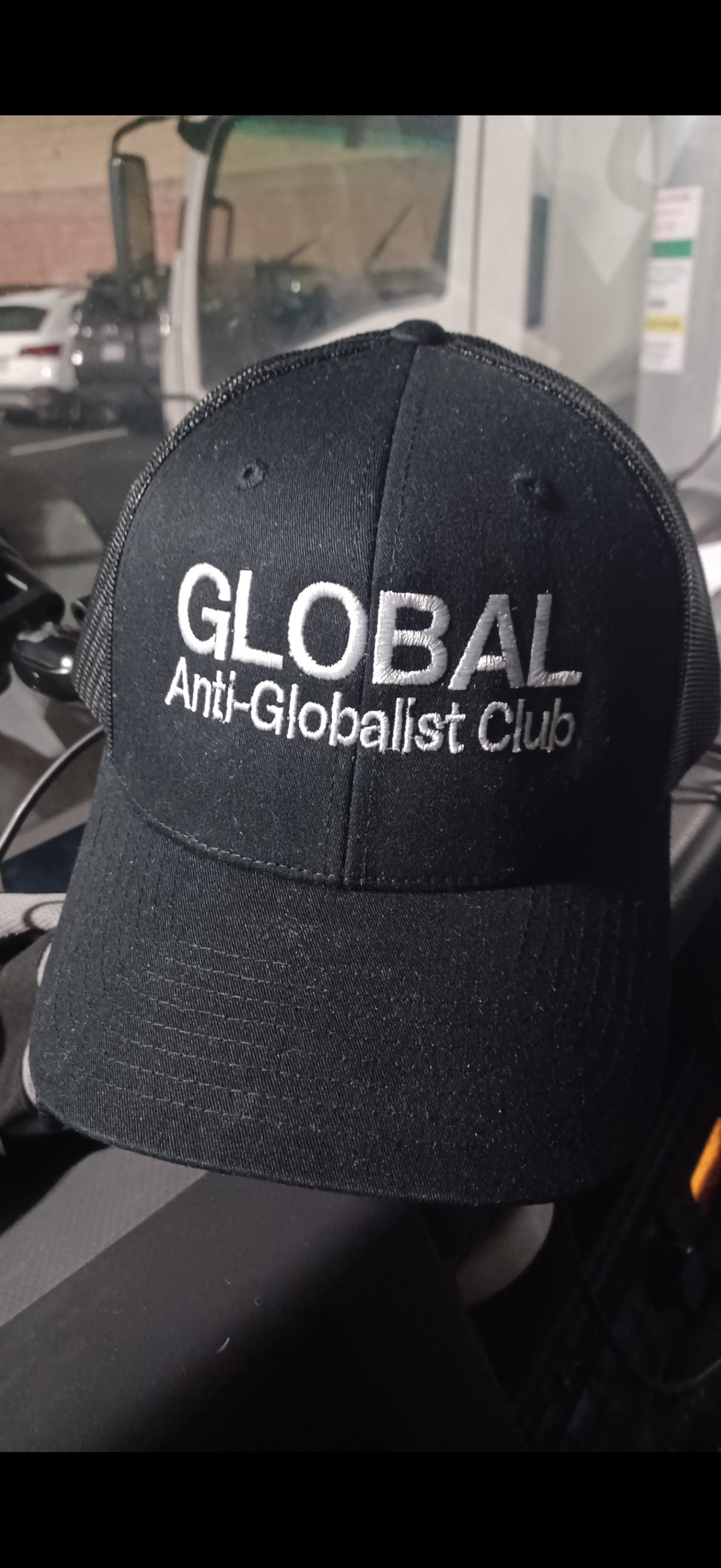 Premium black trucker hat with embroidered white logo. Made by real people, not algorithms. This is not a statement piece—it's a recognition.
